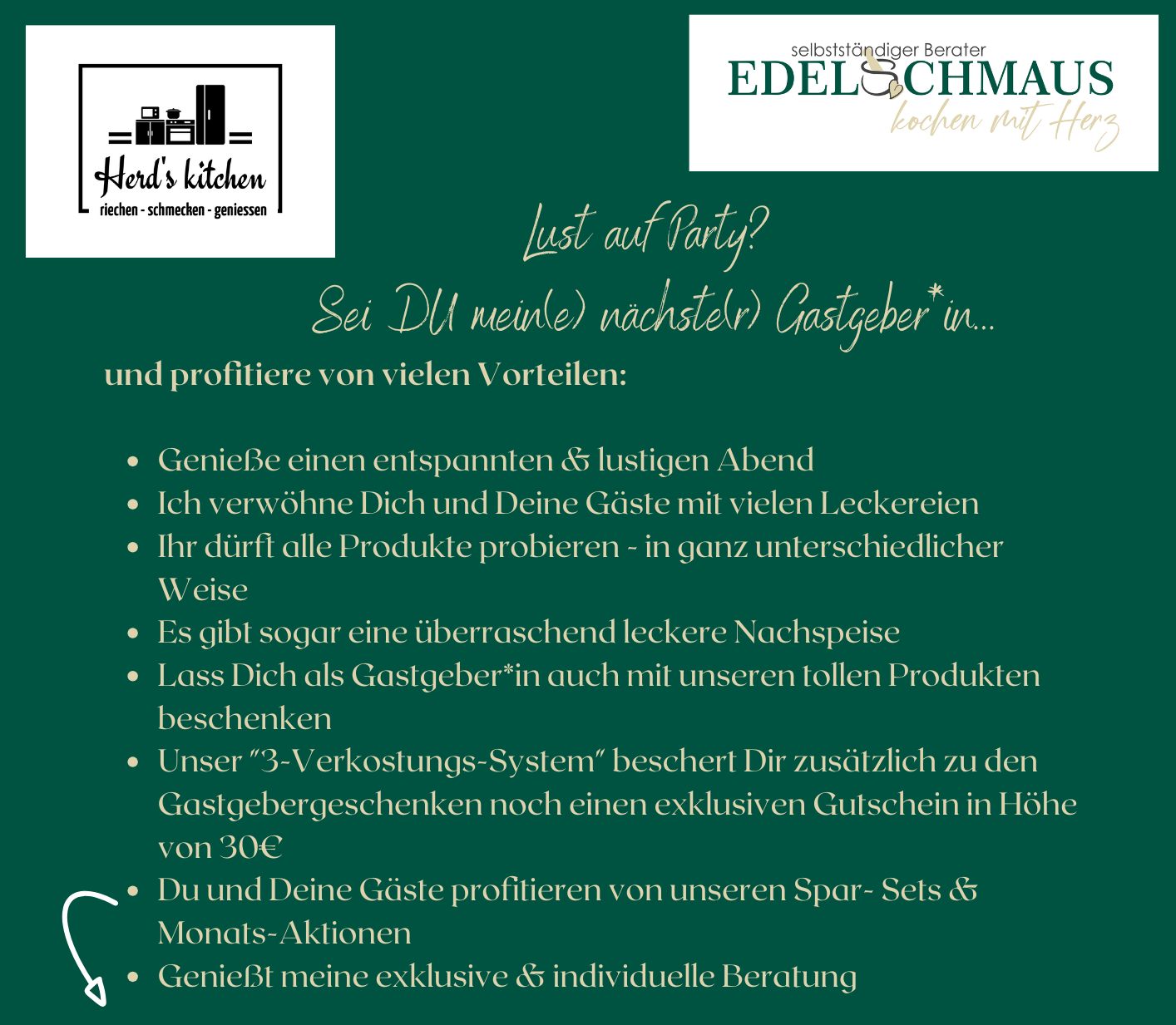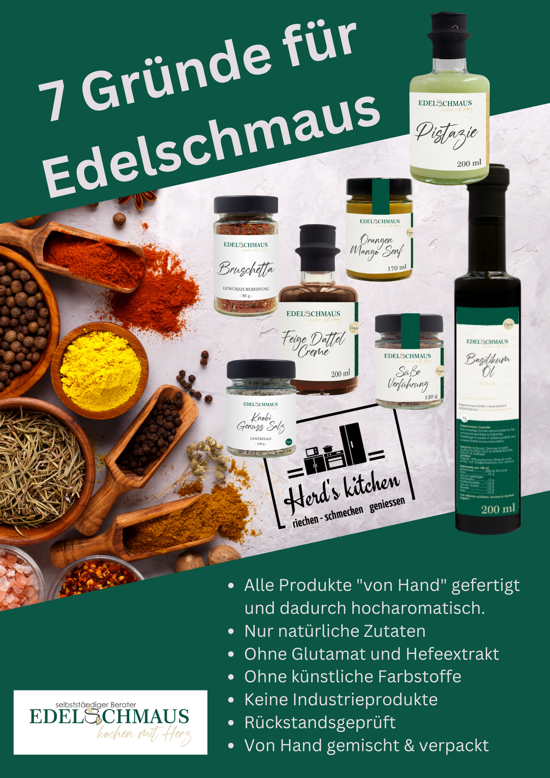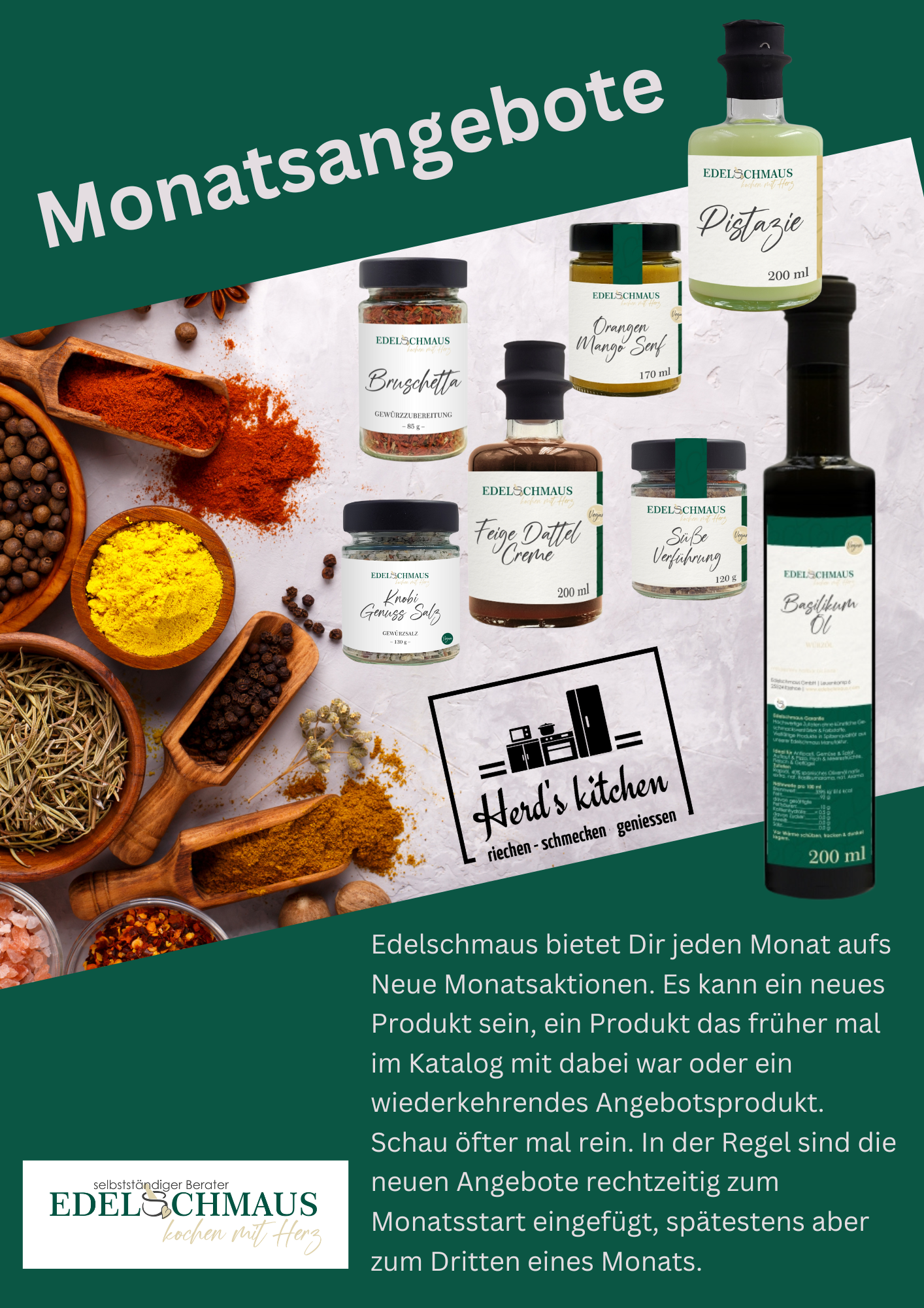 Bei Herd's kitchen, dem selbstständigen "Edelschmaus" Vertriebspartner, findest Du viele Informationen und Neuigkeiten zu "Edelschmaus Produkten". Außerdem wirst Du hier regelmäßig über die aktuellen Angebote und Aktionen informiert.