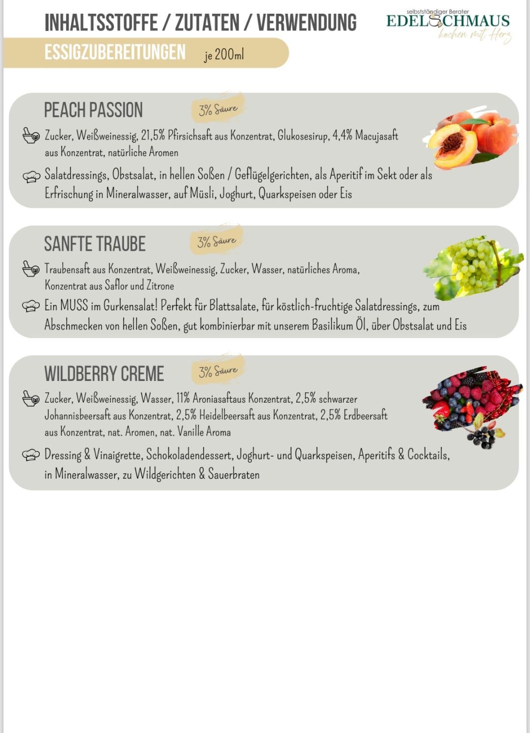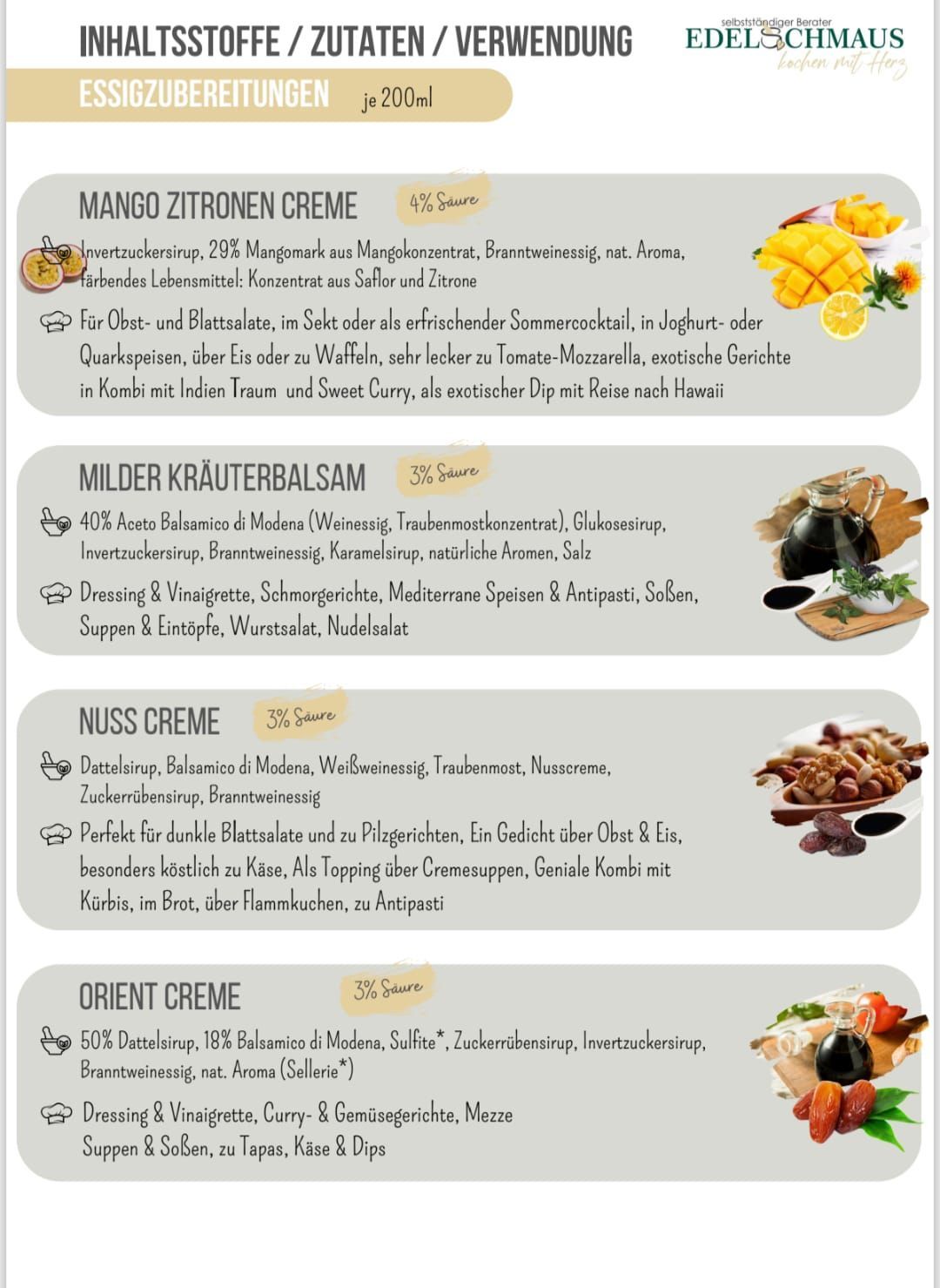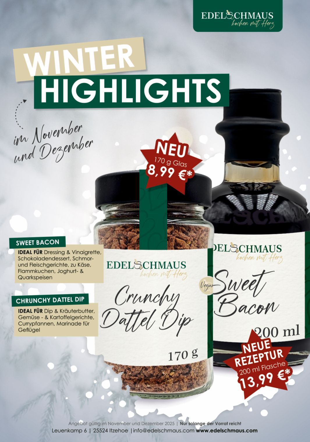 Für alle Salatfreunde gibt es in limitierter Auflage und mit neuer Rezeptur „Sweet Bacon“ die überaus beliebte Essigzubereitung, die nicht nur im Feldsalat eine gute Figur macht, sondern auch in Schokoladendesserts.