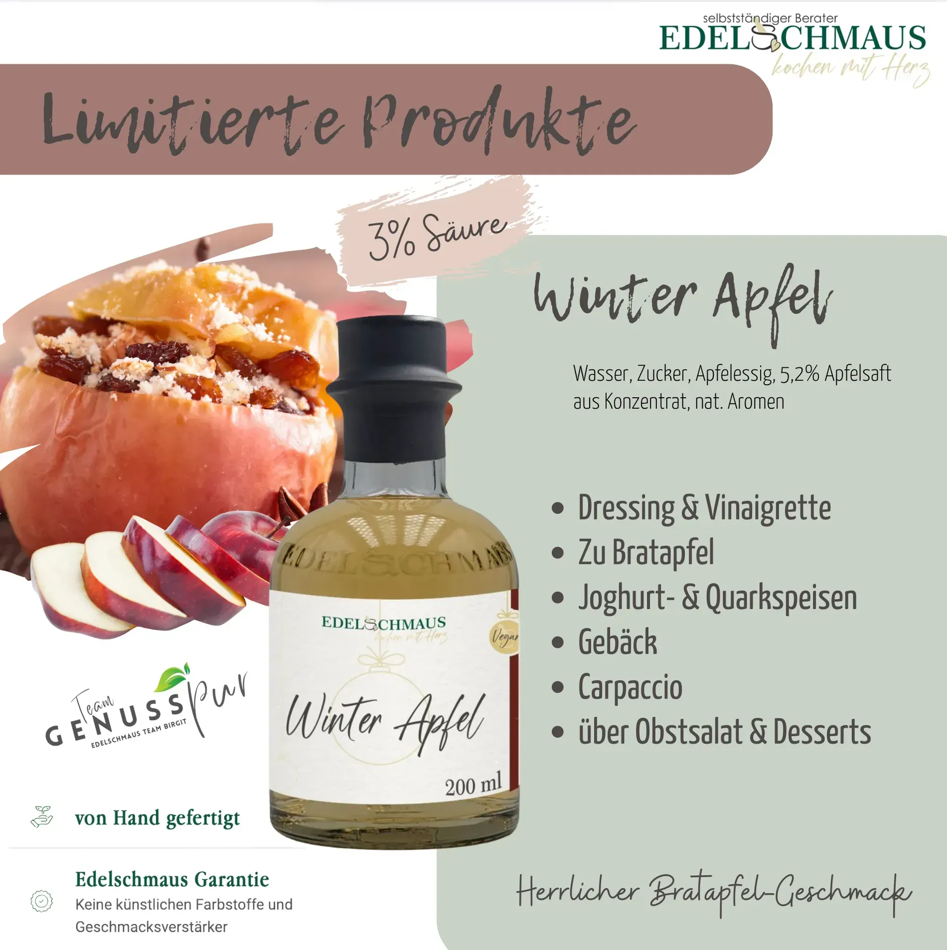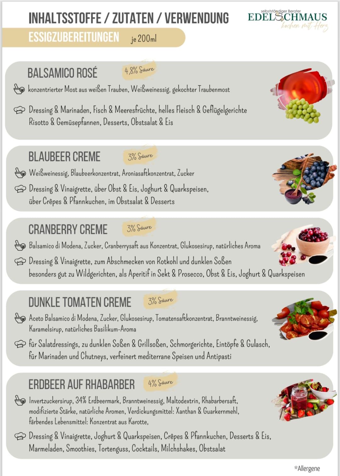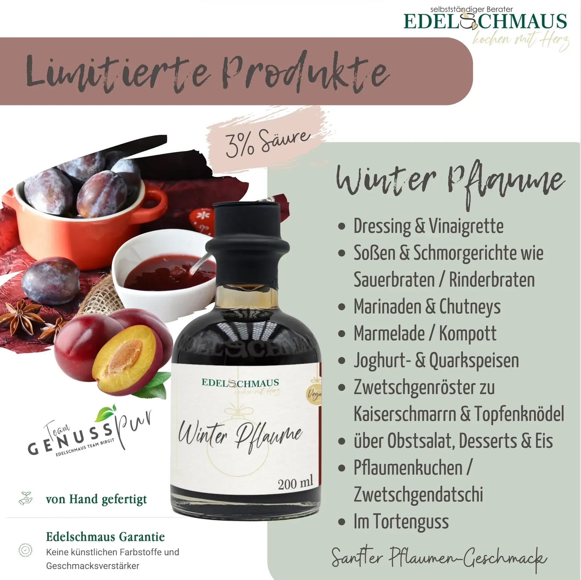 Für alle Salatfreunde gibt es in limitierter Auflage und mit neuer Rezeptur „Sweet Bacon“ die überaus beliebte Essigzubereitung, die nicht nur im Feldsalat eine gute Figur macht, sondern auch in Schokoladendesserts.