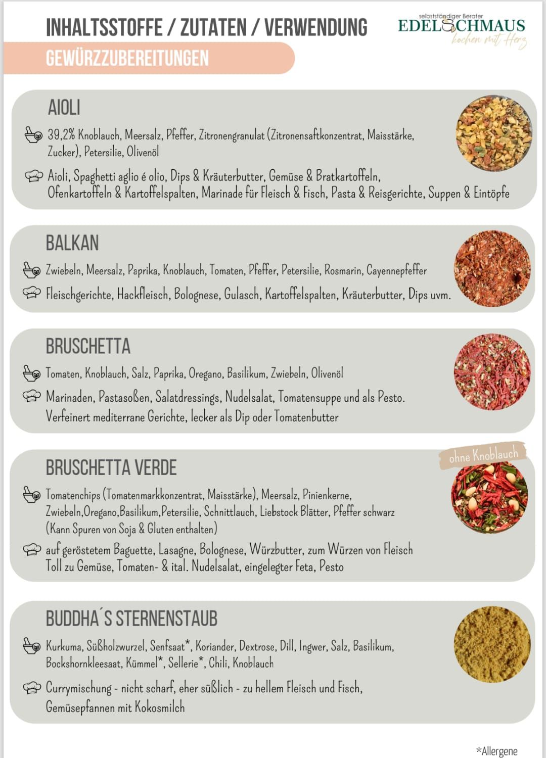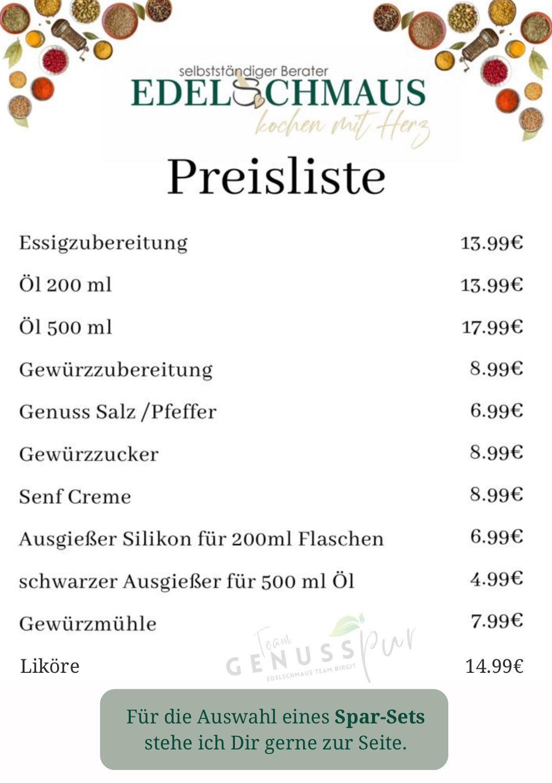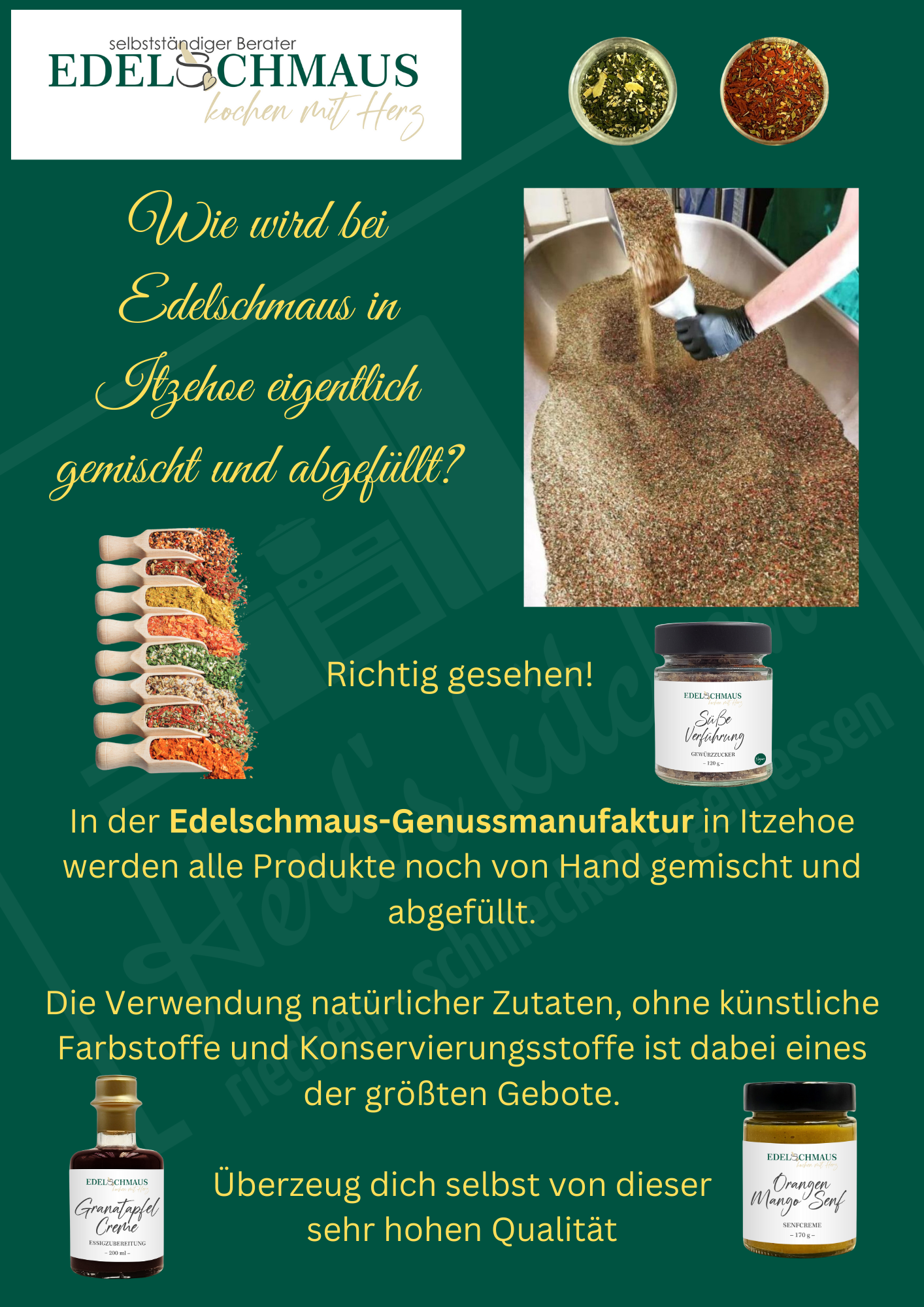 Die Spar-Sets von Edelschmaus haben den Vorteil, dass Sie nach eigenen Wünschen und dem eigenen Geschmack zusammengestellt werden können.