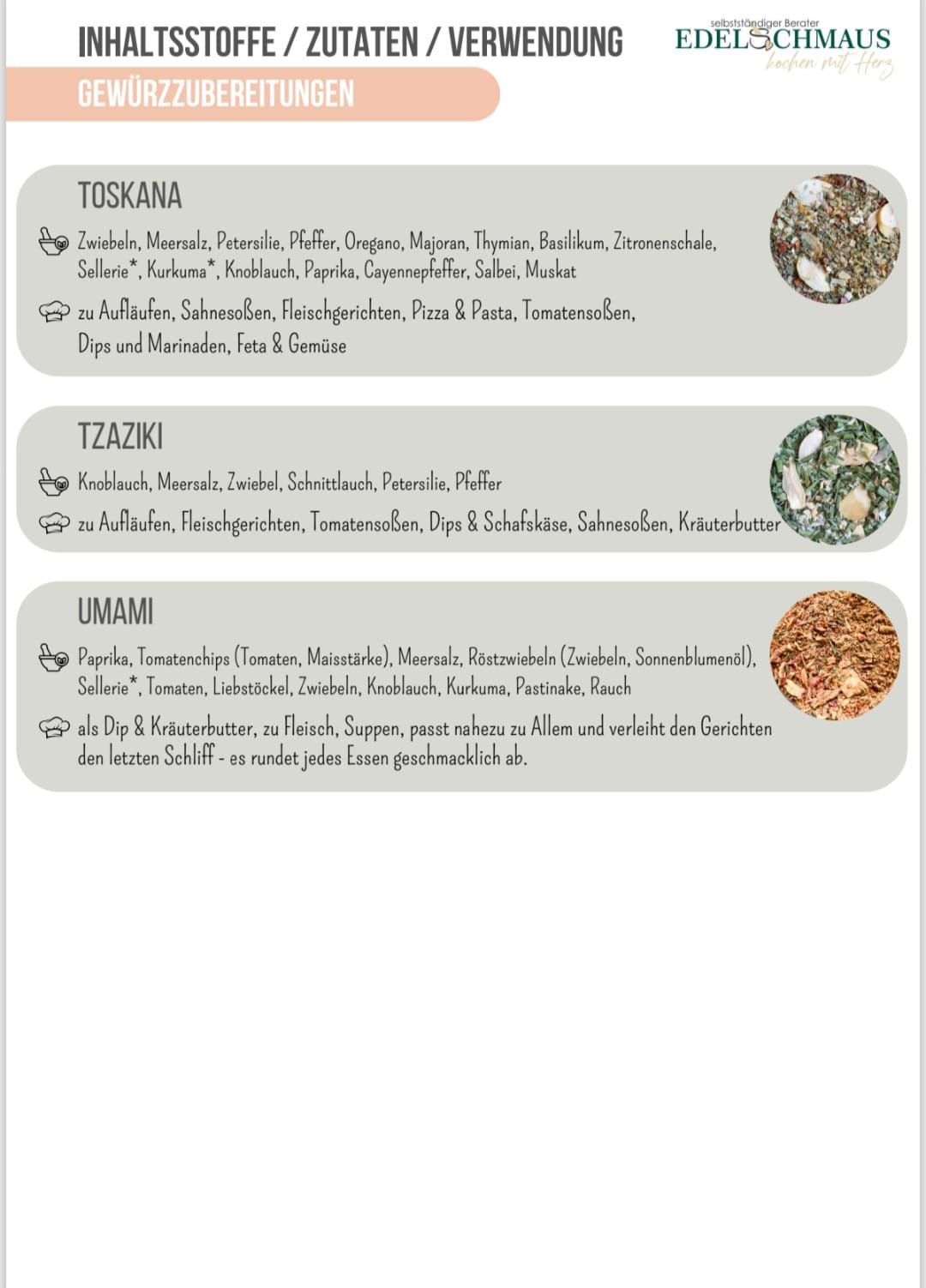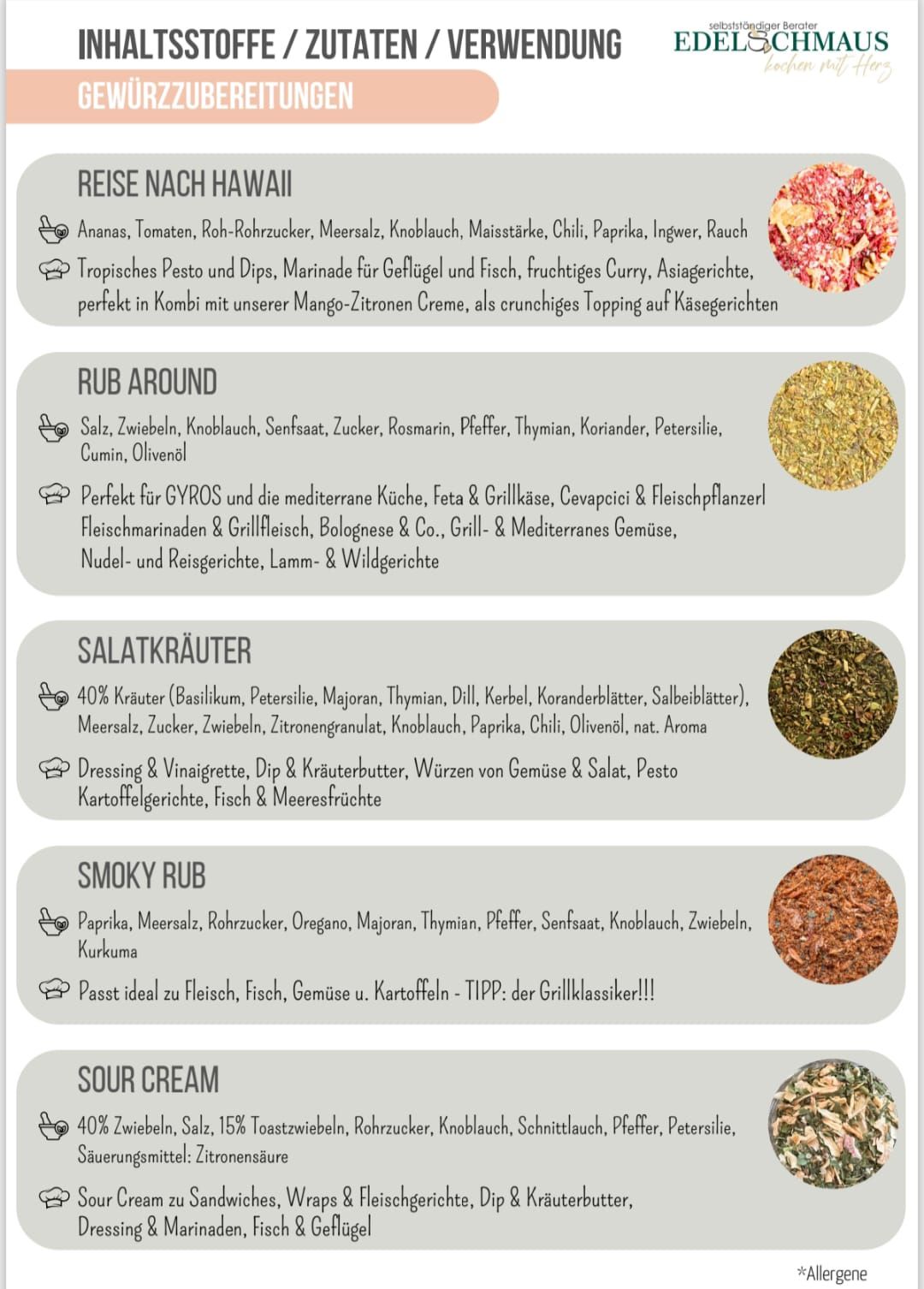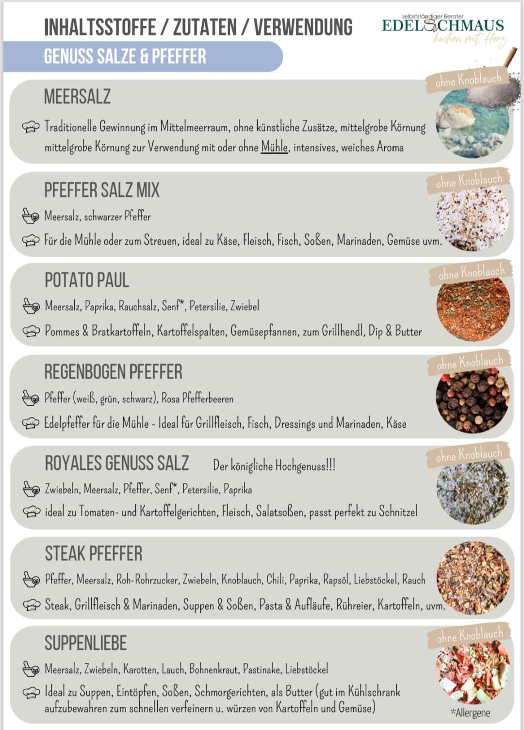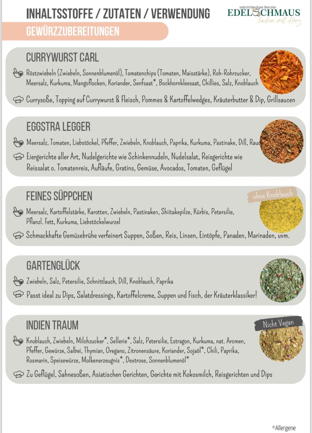 Ebenfalls fest im Sortiment sind nun 5 Spar-Sets, „Feinschmecker“, „Genussreise“ sowie „süß und salzig“. Außerdem seit Oktober 2025 noch mit Dabei "4 YOUR BBQ" und "Das flüssige Trio".
